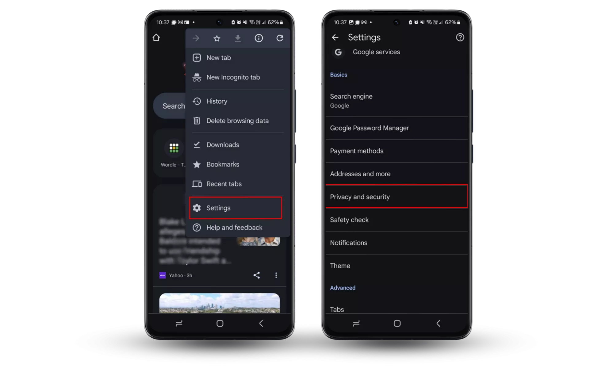 步驟 1-4:打開 Google Chrome,按菜單按鈕 > 設置 > 隱私和安全 > 刪除瀏覽數據。