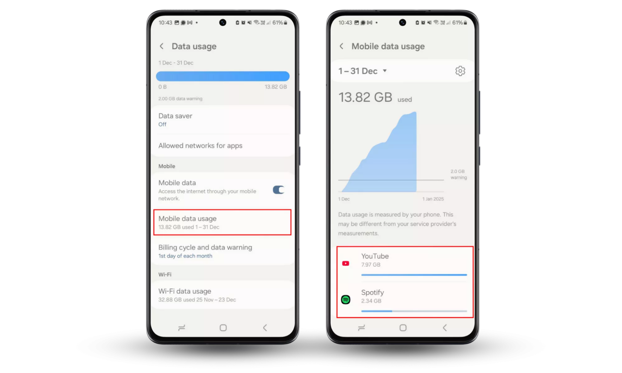 步驟 1-3:打開設置 > 連接 > 數據使用情況。