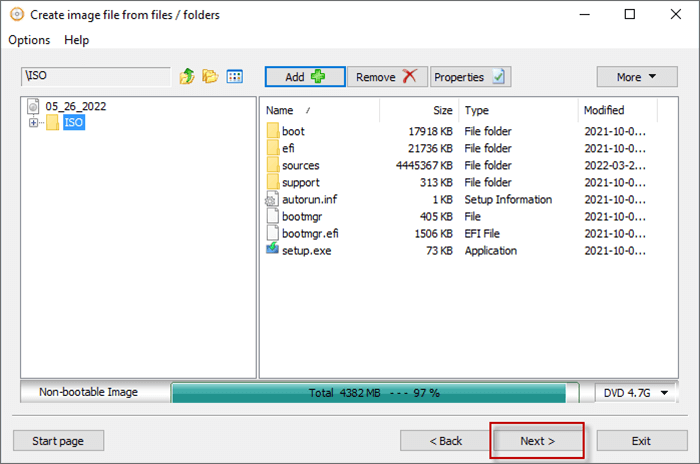 步驟 3:當可啟動 USB 中的所有文件都加載到 AnyBurn 上時,您可以單擊下一個繼續。