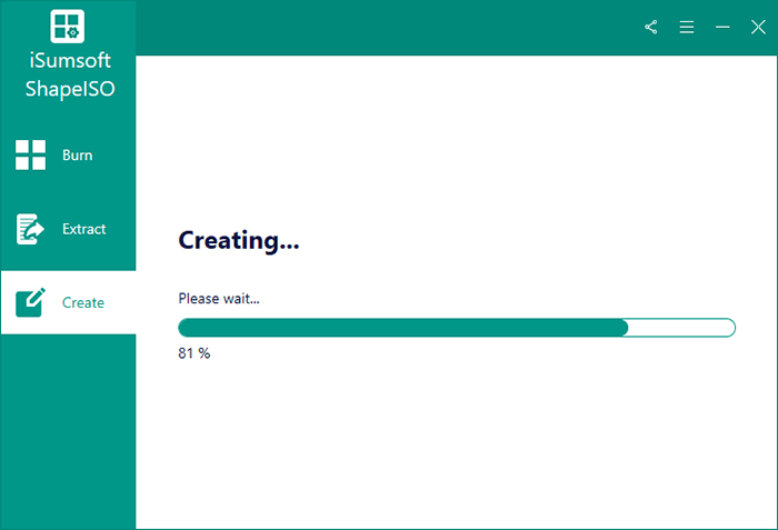 第 5 步:現在 iSoft ShapeISO 正在從可啟動 USB 中創建 ISO。該過程需要幾分鐘。請始終保持 USB 連接到 PC。