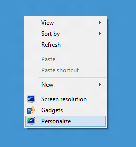 - 右鍵單擊桌面上的空白區域,然後選擇個性化從彈出菜單中。