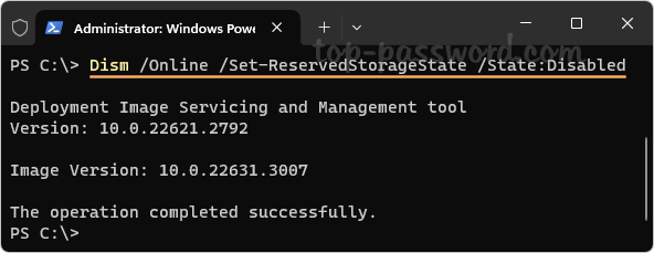 Dism /Online /Set-ReservedStorageState /State:Disabled閱讀更多:如何在 Windows 11 和 10 中啟用或禁用預留存儲