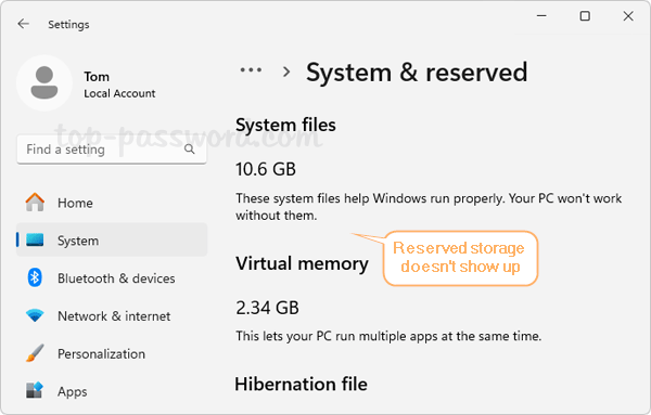 Storage -> System & reserved,“保留存儲”部分將不再顯示。