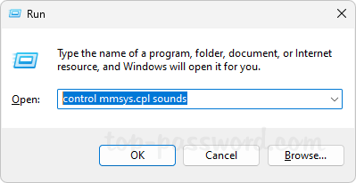 control mmsys.cpl sounds並按 Enter 鍵打開聲音控制面板小程序。