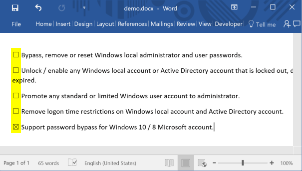 方法 1:在 Word 2016 中插入複選框僅用於打印