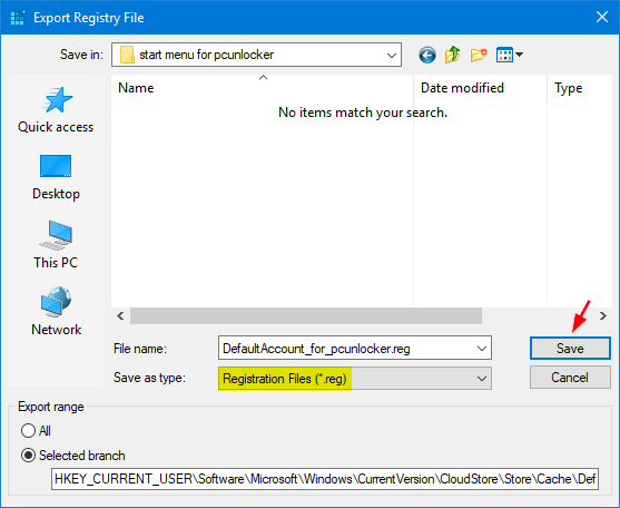 - 鍵入文件名並將該 .reg 文件保存到備份位置。
