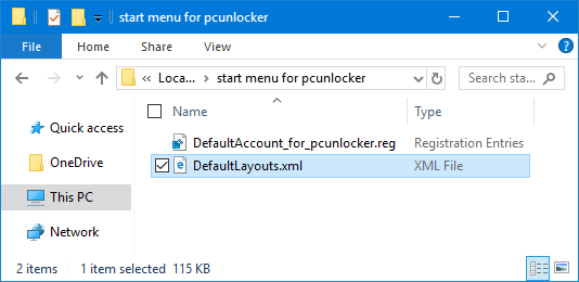- 複製默認佈局.xml將文件複製到存儲 .reg 文件的同一文件夾中。