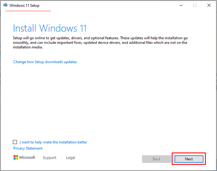 步驟4:遵循Windows 11設置嚮導安裝Windows 11。