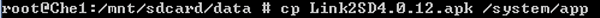 命令: cp xxxx.apk /system/app或者MV xxxx. apk /系統/應用程序