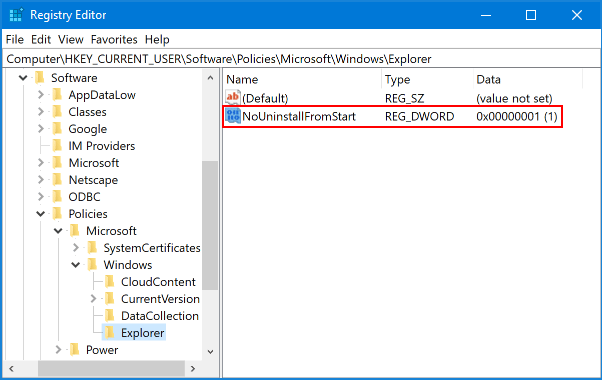 由於本地組策略編輯器在 Windows 10 家庭版中不可用,您可能需要修改註冊表以阻止用戶卸載應用程序。請按照下列步驟操作: