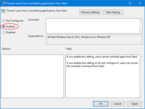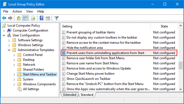 方法 1:使用組策略阻止從 Windows 10 開始菜單卸載應用程序