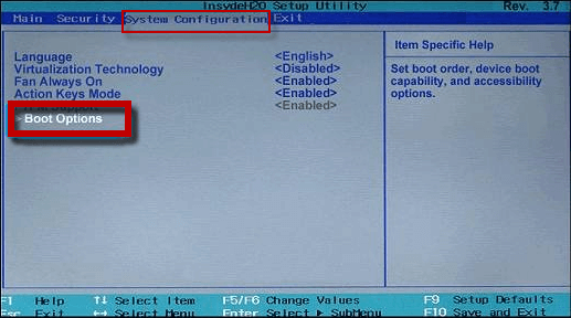 4) 轉至系統配置 > 引導選項,然後啟用舊版支持。