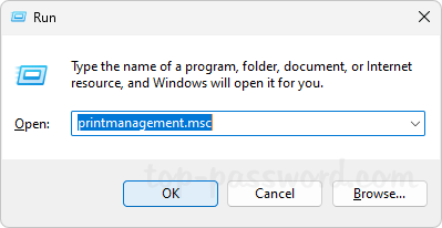 - 按視窗徽標鍵 +右要訪問“運行”框,請鍵入打印管理.msc並按 Enter 鍵調出打印管理實用程序。