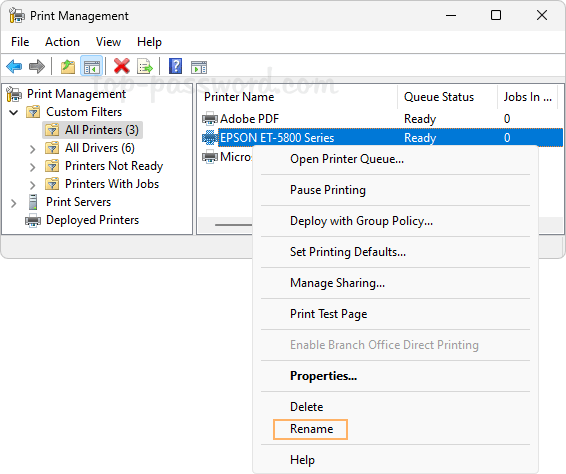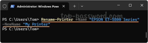Rename-Printer -Name "Current_Printer_Name" -NewName "New_Printer_Name" - 您的打印機將立即重命名。