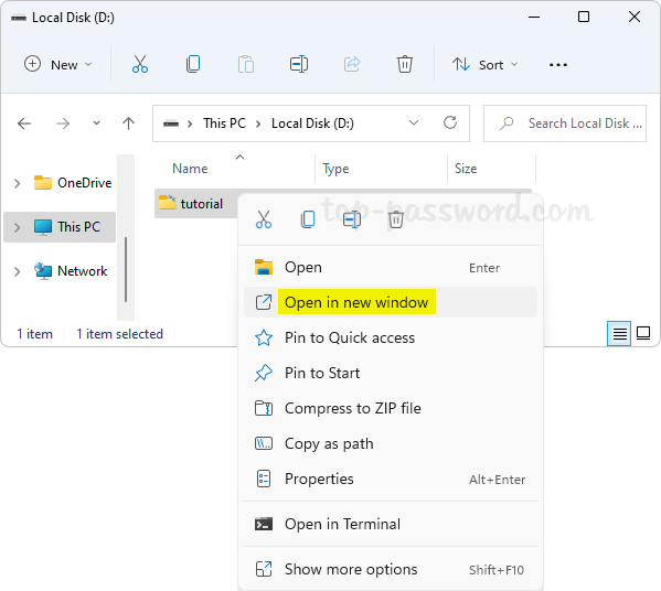 只需在文件資源管理器中右鍵單擊所需的文件夾,然後選擇“在新窗口中打開”從彈出的上下文菜單中。