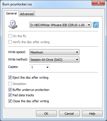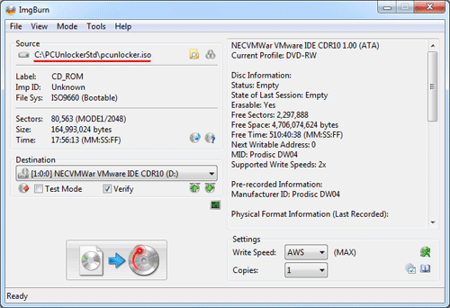 可以使用幾乎所有支持從光盤映像創建CD的程序來創建Pcunlocker。首先下載pcunlocker程序(zip文件),然後解開該文件以提取pcunlocker.iso image。然後,您可以使用三種最佳燃燒工具之一將ISO燒到空白CD:CDBurnerXP,Imgburn或Infrarecorder。