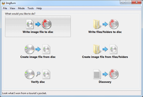 - 啟動Imgburn程序並選擇將圖像文件寫入光盤。