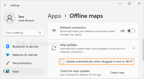 - 這將阻止 Windows 11 自動更新離線地圖。但您仍然可以點擊“立即查看”下方的按鈕可手動更新離線地圖。
