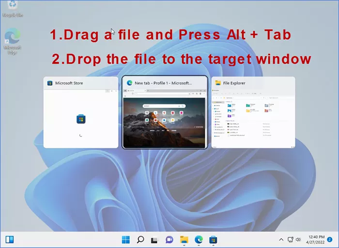 實際上,Alt+Tab 方法可以很簡單地通過切換窗口來啟用拖放功能,但這對於使用觸摸板操作光標的用戶來說可能不是一個很好的體驗。如果您想在Windows11任務欄中啟用拖放功能,以下方法可以幫助您。
