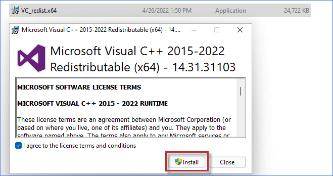 第四步:雙擊下載的文件將其打開。如果您遇到 “未找到 VCRUNTIME140_1.dll“ 錯誤,這裡可以下載微軟 Visual C++ 2015-2022修復它。