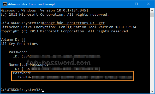 Write-Output ("The drive $MountPoint has a BitLocker recovery key $RecoveryKey.")