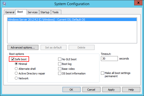 方法 2:使用系統配置將 Windows Server 2012 啟動到安全模式