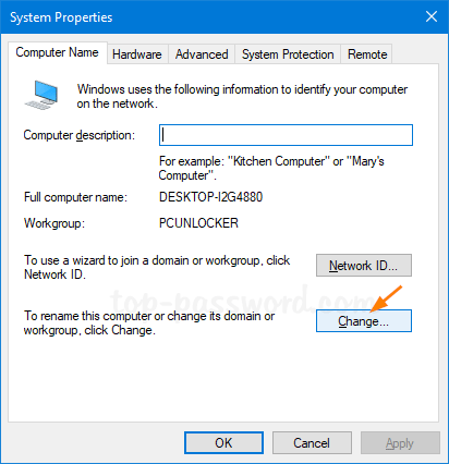 當“系統屬性”窗口打開時,單擊改變按鈕。