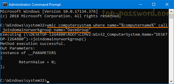 打開提升的命令提示符,然後運行以下命令。將“Workgroup_Name”替換為新的工作組名稱。