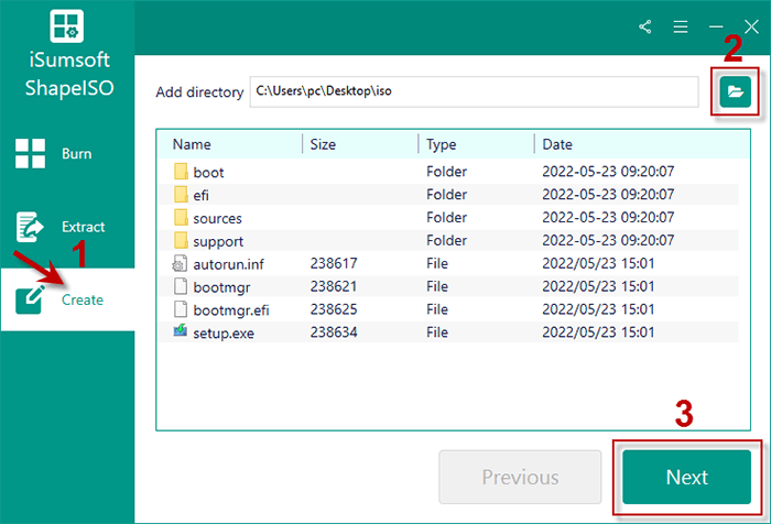 第 2 步:選擇添加添加創建 ISO 所需的文件夾的選項。