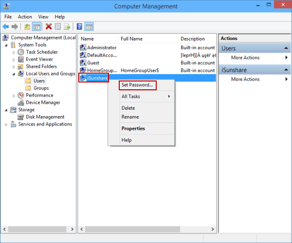步驟3:右鍵單擊用戶帳戶並選擇設置密碼。
