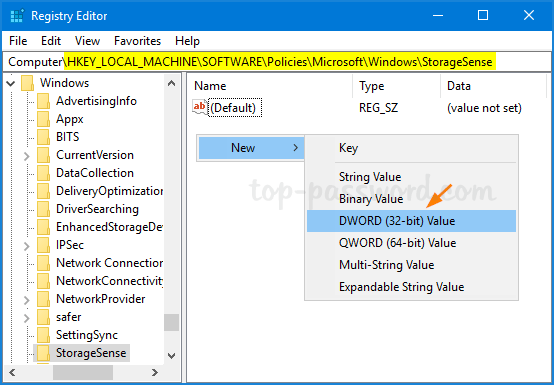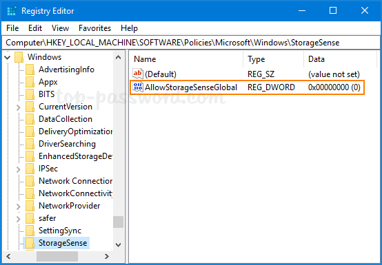 方法 3:使用註冊表編輯器在 Windows 10 中禁用存儲感知