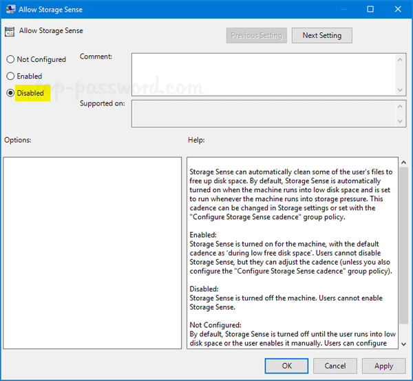 - 現在您已成功在 Windows 10 電腦上禁用存儲感知。此方法還將阻止用戶從“設置”應用程序打開存儲感知。