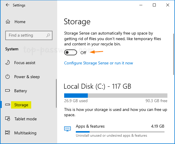 - 由於存儲感知已關閉,因此它不會自動刪除臨時文件以釋放磁盤空間。