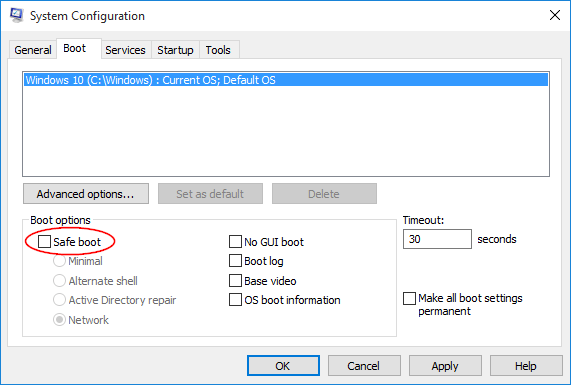 - 取消選中安全模式選項。單擊“應用”,然後單擊“確定”。再次重新啟動,希望“開始”菜單現在可以工作。