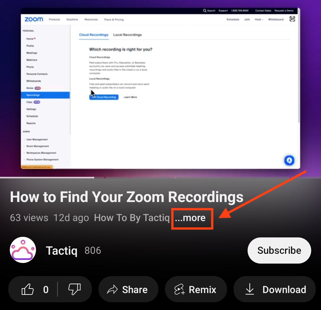 - 在 YouTube 視頻標題下,您會看到“更多行動”按鈕(由三個點表示)。單擊它。