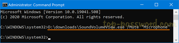 如果要從命令提示符將麥克風靜音,請鍵入以下命令並按 Enter 鍵。