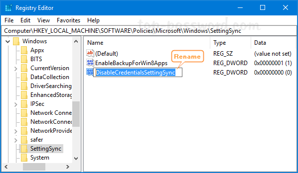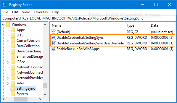 如果稍後需要打開密碼同步,只需更改 DWORD 的值即可禁用憑據設置同步到 0 就完成了。