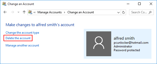 - 從選項列表中,單擊刪除賬戶選項。