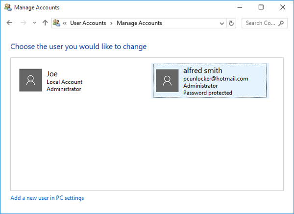 筆記:當您登錄計算機時,您無法從計算機中刪除帳戶 - 您需要首先使用本地帳戶創建替代登錄帳戶。這些方法只是從 Windows 10 計算機本地刪除 Microsoft 帳戶。如果您想關閉/刪除您的在線 Microsoft 帳戶,請訪問微軟的帳戶關閉網頁。