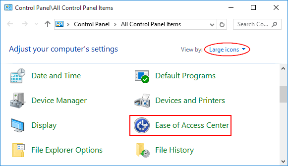 打開控制面板大圖標查看,然後單擊輕鬆訪問中心。