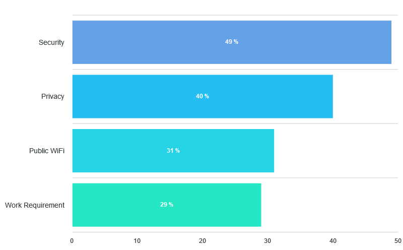 - 大約有50%的VPN用戶表示出於安全原因使用它。