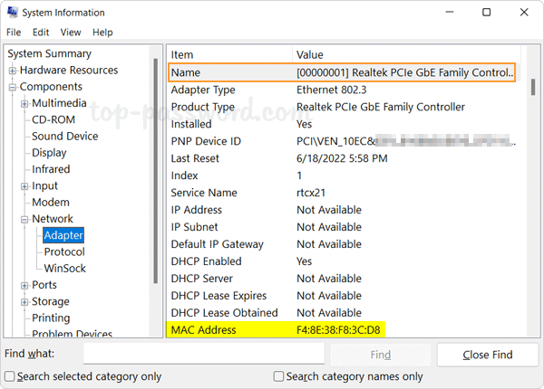 - 它將顯示 PC 上安裝的每個適配器的 MAC 地址,包括虛擬網絡適配器。