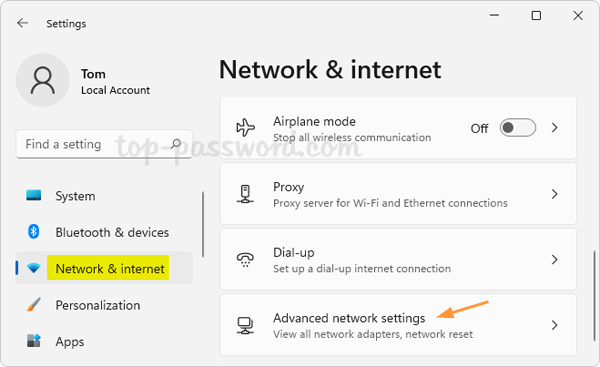 - 按 WIN + I 鍵打開“設置”應用程序。選擇網絡與互聯網在左窗格中。在右側窗格中,單擊無線上網或者以太網取決於您連接到哪個適配器。