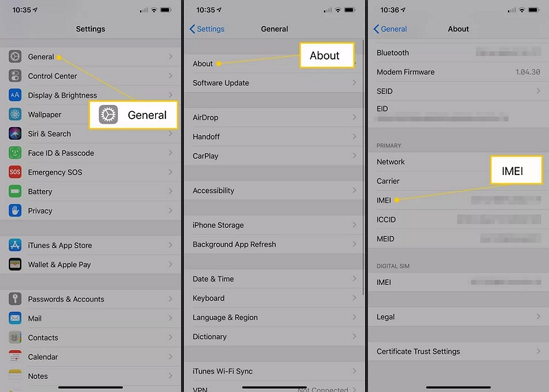 步驟1。查找您 iPhone 的 IMEI 號碼。有幾個網站聲稱能夠使用 IMEI 號碼查找 iPhone 的鎖定狀態。請謹慎使用這些資源,因為它們可能已過時或不可靠。其中一些還收取費用。如果您想嘗試此方法,您需要找到您的 IMEI 號碼。為此: