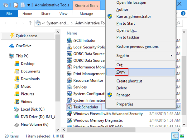 步驟3:複製快捷方式任務調度程序在工具中並將其粘貼到桌面。