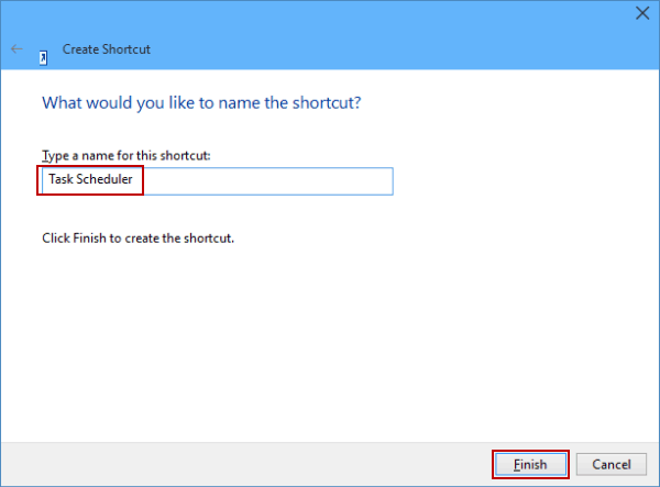 步驟3: 進入任務調度程序在名稱框中,然後單擊結束創建快捷方式。