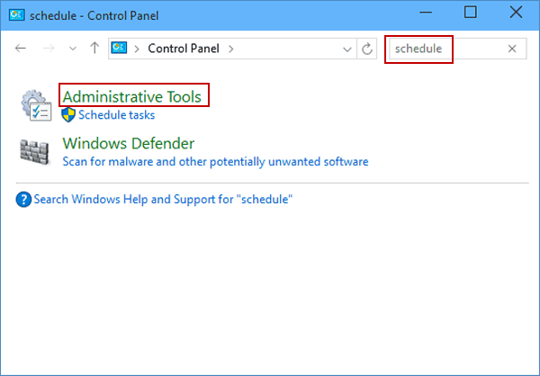 步驟2: 進入日程在右上角的搜索框中並選擇管理工具。
