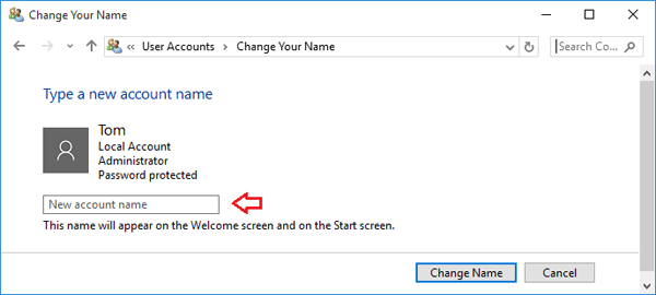 - 現在您可以將帳戶名稱更改為您選擇的名稱。完成後,單擊更改姓名按鈕。
