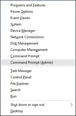 - 打開提升的命令提示符。在 Windows 10 或 8 中,按 Windows 鍵 + X 並選擇“命令提示符(管理員)”從高級用戶菜單。