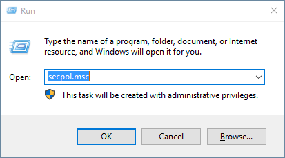 - 按 Windows 鍵 + R 打開“運行”框。類型secpol.msc並按 Enter 鍵。